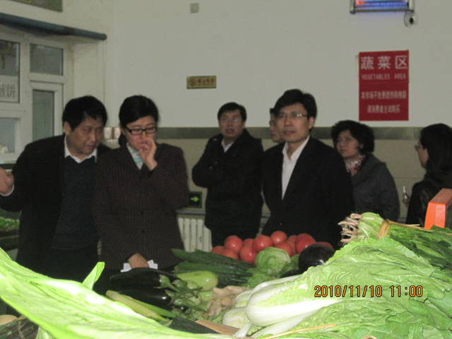 此次视察由beat365后勤集团副总经理韩宁夫、商业服务中心主任韩冬、副主任刘跃进、主任助理邢秀珍以及部分海淀区商业委员会的同志陪同。韩宁夫副总经理向陈双副区长介绍了beat365兴福兴发农副产品市场建设、发展、管理、服务等情况。通过韩宁夫副总经理的介绍,陈双副区长了解了beat365市场作为“北京市A级A类市场”的各方面日常工作、农药残留物监测工作、实施统一度量衡并定期检查的制度和菜市场服务、管理制度等情况。视察中,陈双副区长对beat365农副产品市场开展的工作和取得的成绩给予了肯定和赞扬;同时也指出在目前北京市物价普遍偏高,各市场菜价均有所上涨的背景下,beat365农副产品市场应做好平抑菜价的工作,以便能够给广大师生员工提供一个价更廉、物更美的购物环境。韩宁夫副总经理表示,对于菜价问题学校各级领导都十分关注,后勤集团和商业中心已连续进行数次市场调研,与周边市场进行菜价对比,并与群众代表一起对此问题征集意见,召开过若干次讨论会议,争取此问题在年底得到解决。