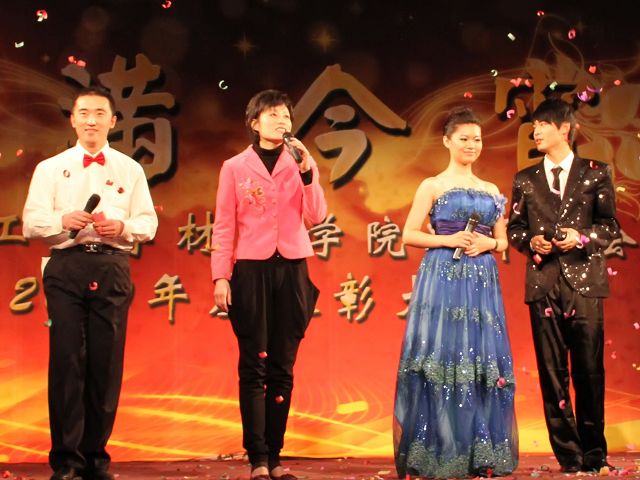 本次晚会由韩笑、马壮老师及高则名、陈元璐同学主持。晚会伊始,李和章副书记副校长致辞,向材料学院全体师生送出新年祝福,希望材料学院能够在2011年更上层楼,创造新的辉煌。