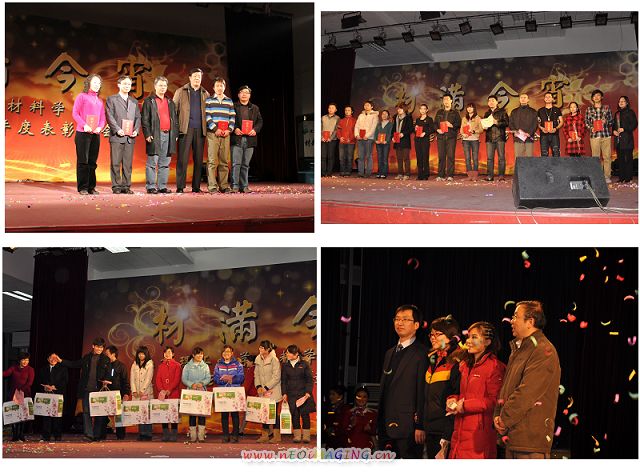 此外,晚会颁出了材料学院2010年度柏百顺优秀教师、材料之星、优秀团队、助学金、乐活摄影大赛、院党课优秀学员等奖项,表彰了一大批优秀的教师和学生。