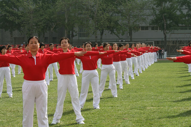 4月16日早上八点,运动会开幕式在雄壮的运动员进行曲中开启,后勤集团广播体操运动员以在刚刚结束的广播操比赛中第一名的成绩,代表后勤健儿的精神风貌,迈着矫健的步伐走入田径场,进行广播操的表演,接受校领导的检阅。运动员们个个面带笑容,动作齐整,随着节奏飞扬,跃动。那种“沙场秋点兵”的壮阔给整个运动会描上难以逾越的激情。