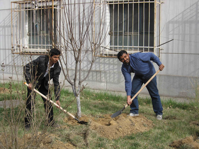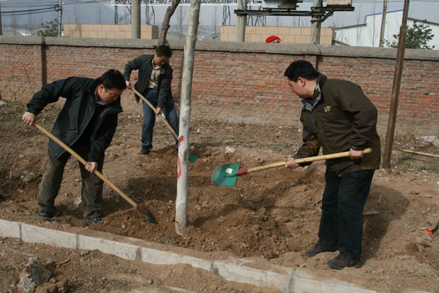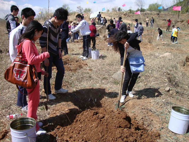4月17日,当来到密云云龙涧参加义务植树的车辆刚驶入植树现场后,人头攒动、彩旗飘飘的热烈场面立刻在大家眼前呈现,大家迅速下车来到指定区域,三三两两一组地忙碌着,同时,彼此互相检查挖好的树坑是否符合标准,最后,按照“一垫二提三埋四踩”的植树要领精心栽种下各自领来的树苗,有人手扶树苗、有人挥锹培土,场面热火朝天。经过两个多小时的努力,大家的努力终于换来了一株株屹立于春风中茁壮成长的小树,纷纷合影留念。活动结束后,师生们纷纷建议要把植树造林、保护环境这件功在当代、利在千秋的事情长期坚持下来,在积极投身义务植树过程中履行自己的义务和责任,用实际行动为保护生态、美化环境做出自己的贡献。