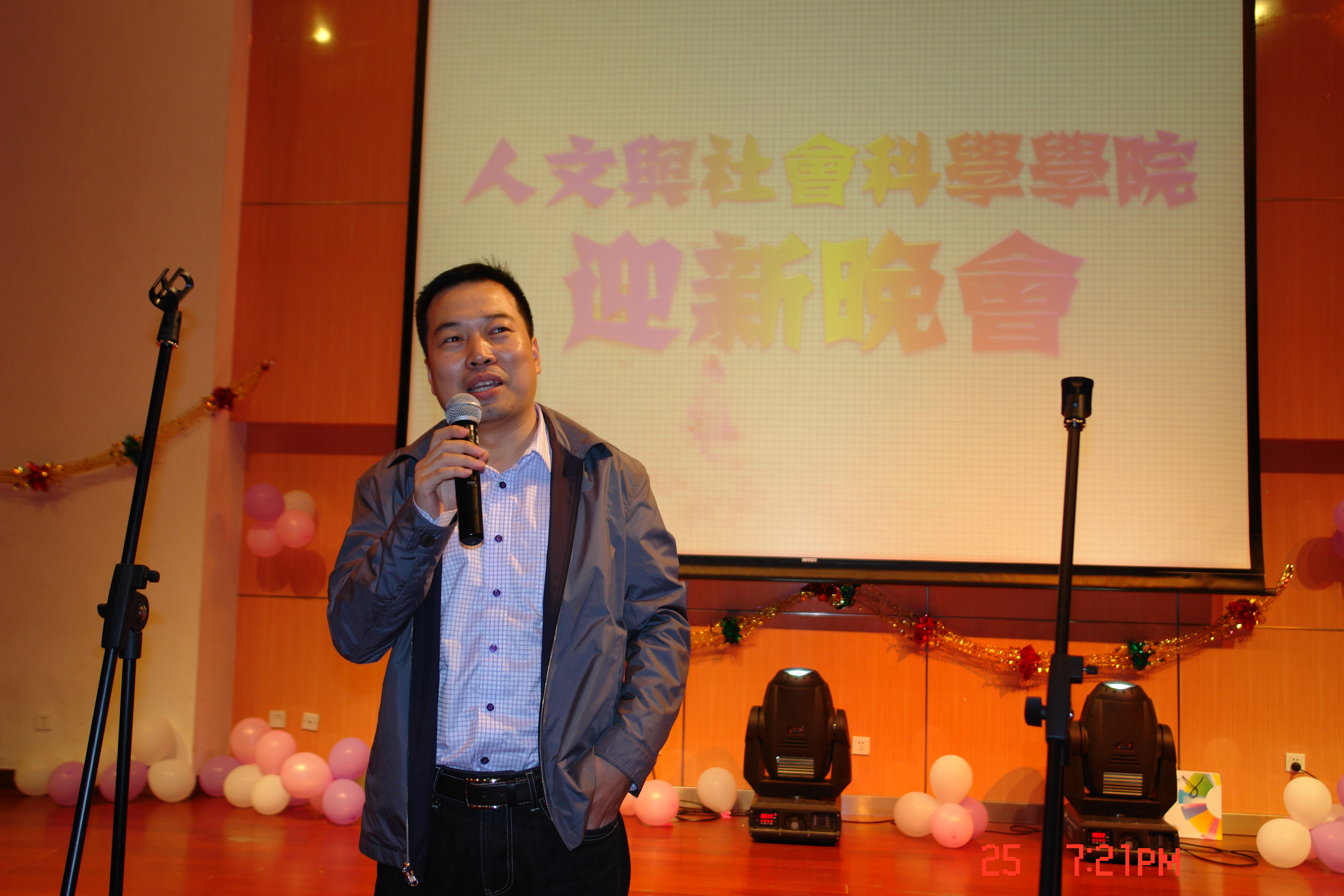 2012年9月25日晚,人文与社会科学学院2012级迎新晚会在综合教学楼演艺厅举行。人文学院副院长贾利军老师,党委副书记、副院长徐贵宝老师,班主任王丹、向小平、冯卓、张溪老师,辅导员孙硕、王群超、于满出席了本次迎新会。2012级全体新生与2010、2011级部分学生到场观看。