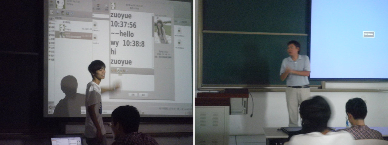实训前两天学生参观了软件园区医学影像设备研制车间、软件研发大楼和会展中心等实际工作场所,东软实训教师也为学生做了职业生涯规划和软件行业现状与发展趋势等讲座。在接下来的10天里,学生们在实训教师的指导下分为7组,分别开发了运行于Linux操作系统平台的邮件系统软件和即时通讯软件,可以实现局域网内任意电脑之间的信息接收与发送,也可作为支持中小型规模的企业内部信息交流工具。各组中学生分别指派不同角色,各司其职,分工合作,分为组长、配置管理员、数据库负责人、界面负责人和通讯负责人等角色。按照标准的软件开发流程开发是这次实训的目的之一,期间同学们完成了从需求分析、总体方案设计、详细方案设计到模块编码、软件测试和系统集成的全过程工作。