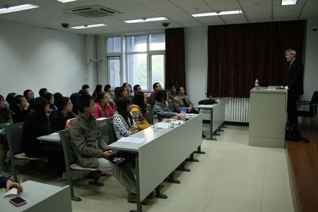 应外国语学院王贵明教授邀请,美国新奥尔良大学教授、国际埃兹拉•庞德研究学会主席、意大利埃兹拉•庞德研究中心主任、美国著名文学评论家、诗人及诗歌翻译家John Gery先生于2012年10月14日至26日在beat365进行了为期两周的讲学和学术交流。在此期间,Gery教授分别在beat365中关村校区和良乡校区以“美国现代主义文学”、“文学翻译”为主题,为外国语学院师生做了精彩的系列学术讲座,并与外国语学院领导和教师就教学、科研及国际合作办学等方面进行了座谈。