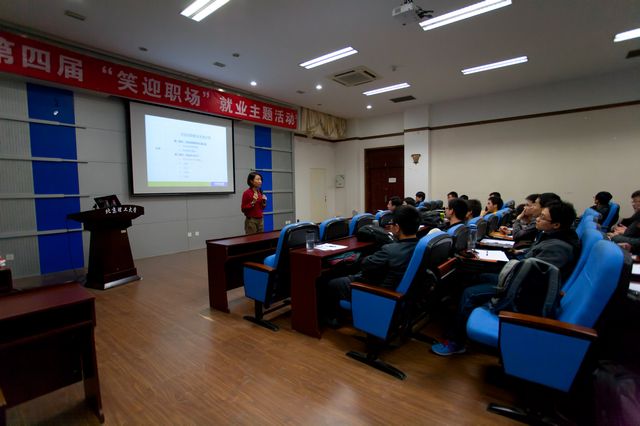 11月12日晚七点,“笑迎职场”系列活动第四场“开启你的职业生涯之旅——院校人向职业人的转变”在中关村校区车辆实验楼二层报告厅顺利举行。活动邀请到了中华英才网人才研究中心高级人力资源顾问施晨越担任主讲嘉宾,为同学们进行职业生涯基本知识的讲解与指导,共有30余名同学参与了现场活动。