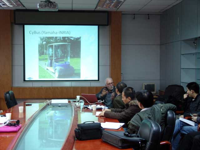 2012年11月21日14:00——16:00,交通运输工程学术讲座系列之一在beat365车辆重点实验室一层会议室举行。本期讲座的主讲人是beat365交通运输工程系系主任高利教授和来自法国的Michel教授,报告的主题是:“Automated Public Transport: ABRT,PRT and Cyber cars”。出席讲座的有机械与车辆学院交通运输工程系赵亚男教授、吴绍斌教授、熊辉教授、陈雪梅老师、姚丽亚老师,车辆专业博士生,交通专业博士生、硕士生及交通运输公路院工作人员等。