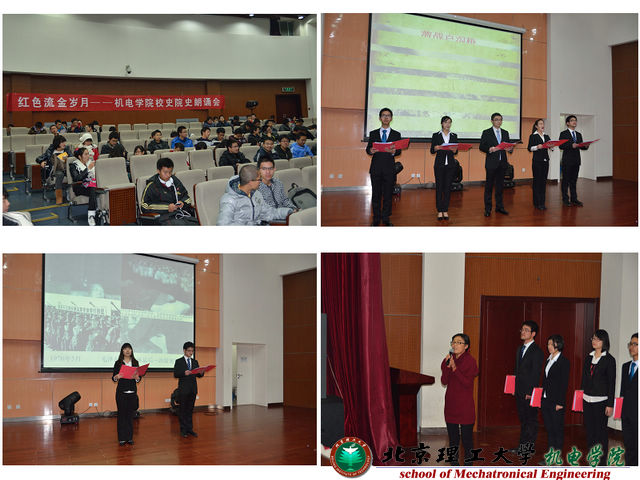 由马列主义学习实践会举办的机电学院院史朗诵会至今已经成功举办了三届,通过活动,促进同学们缅怀中了解历史,重温中坚定信念。祝福北理工,祝福机电学院能在今后的发展中再创佳绩!