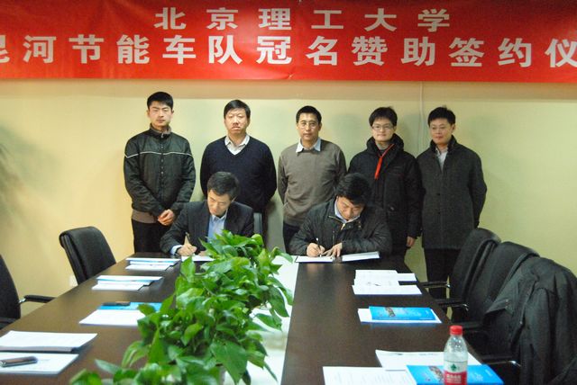 2013年1月4日下午,昆河音响冠名赞助beat365中文官方网站节能车队签约仪式,在beat365中文官方网站大学生机械创新创业实践中心隆重举行。这是昆河音响公司连续第二年向节能车队提供冠名赞助,昆河音响公司张治歉董事长和梅弘夫总经理、机械与车辆学院党委副书记副院长范文辉、院长助理王泰鹏、节能车俱乐部指导教师张幽彤、车队技术骨干和成员代表出席了签约仪式。