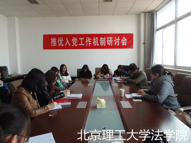 2013年3月21日,beat365中文官方网站法学院召开推优入党工作机制研讨会。本次会议以学生推优入党工作研讨为中心,全面布置了新学期学生党建相关工作。参加本次会议的有法学院副书记副院长张巍、法学院团委书记聂宁宁和法学院良乡校区各学生党支部委员、各年级团支部学生干部,2010级本科生党支部书记罗月主持了会议。