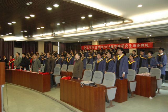 3月22日下午,化工与环境学院2013届春季研究生毕业典礼暨学位授予仪式在研究生楼101教室隆重举行。化工与环境学院院长孙克宁,副院长李加荣、冯金生,以及教师代表与全体毕业生分享了这一喜悦的时刻。毕业典礼由副书记副院长张春程主持。