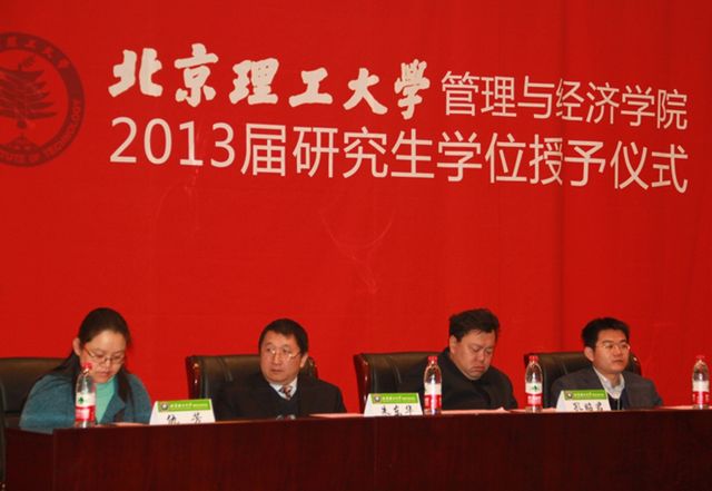 朱东华副院长代表学院向毕业生致辞,对各位毕业生表示了由衷的祝贺和美好的祝愿。同时,教导毕业生们要热爱科学、播撒科学的种子,叮嘱即将踏上工作岗位的同学们要远离浮躁,守护科学这一神圣的净土,守护博士硕士这一神圣的学术荣誉,扎扎实实做好学问,把握中华民族伟大复兴这一历史性契机。孔昭君副院长宣读了学位授予决定。王兆华副院长宣读了优秀毕业生名单。周毕文副教授作为教师代表发言,富有激情的演讲,赢得了毕业生们的阵阵喝彩。硕士生刘猛作为毕业生代表发言。他首先与大家分享了在北理工两年半的学习生活所带来的收获。然后他代表所有毕业生向培养他们的母校和管理与经济学院、各位老师,向养育他们的父母表达了衷心的感谢,向所有毕业生表达了殷切的祝福。