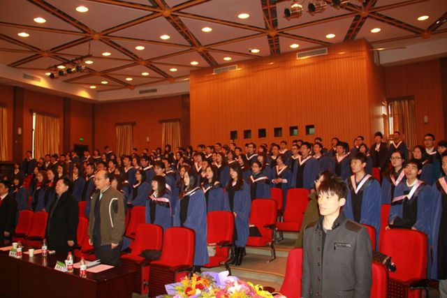 2013年3月27日上午,管理与经济学院2013届春季毕业生毕业典礼暨学位授予仪式在七号教学楼报告厅隆重举行。管理与经济学院副院长朱东华、孔昭君、王兆华、副书记、副院长仇芳、MBA中心主任周毕文、市场营销系主任倪跃峰、会计系主任陈宋生,公共管理系李亚、团委书记彭明雪、研工委书记梁昊出席了毕业典礼,与管院2013届203名春季毕业生共同见证了这一激动人心的时刻。毕业典礼由副书记、副院长仇芳老师主持。