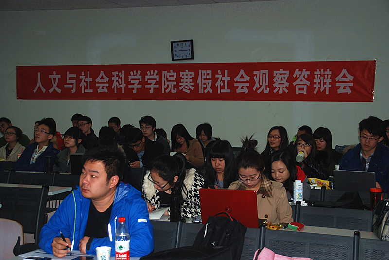 根据校团委2013年寒假社会实践活动与寒假返乡社会观察活动的相关要求,学院团委针对所有项目的可行性和研究意义进行审核,对部分申请项目提出了详细的修改意见。同学们对此次社会观察投入了极大的热情,不少实践成员在登上返乡列车的一刻已经开始了社会观察的具体工作。经过一个假期的准备,参加最终答辩评审会的39个优秀团队,围绕“学习十八大,践行科学发展观”为主题,弘扬人文精神,纵览社会百态,以个人或团队的形式开展实践活动,本着“就近就便、因地制宜”的原则在家乡灵活开展了各具特色的实践活动。
