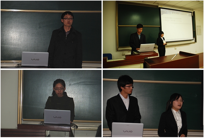 各实践团队用丰富的调研资料和成果,通过PPT、视频、图片等方式向大家展示了他们丰富多彩的实践活动。2010级经济系的学生宋爱娴就金融市场和金融工具的发展与人类生活的关联程度进行了分析,为金融领域的发展提出了自己的看法;大一年级的甘霖同学为大家介绍了保障性住房的建设与分配问题,并提出了5点建议;社会工作专业的郑悦等人,对老年人养老问题展开综合分析,号召大家对老年人晚年生活的重视。同学们或慷慨陈词,或引经据典,给评委和观众留下了深刻印象。