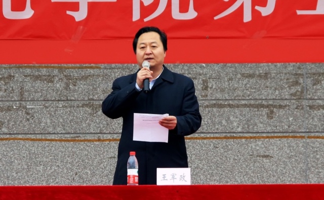 党委书记王军政教授致开幕词。他指出体育是力量的角逐,体育是智慧的较量,体育是美丽的展示,体育是理想的飞扬。在紧张激烈的赛场上,希望全体师生以饱满的激情、昂扬的斗志、勇于拼搏进取的信念、团结向上的精神投入到本届运动会中去,赛出成绩、赛出水平、赛出风格!用我们的行动去追求更高、更快、更强!