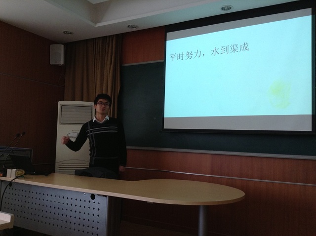 基地党支部书记马辰同志与大家分享了观看“2013影响世界华人盛典”的体会,希望大家能从这些令世人骄傲的华人典范汲取正能量,思考自己大学的梦想,树立远大的目标,并为之努力拼搏。