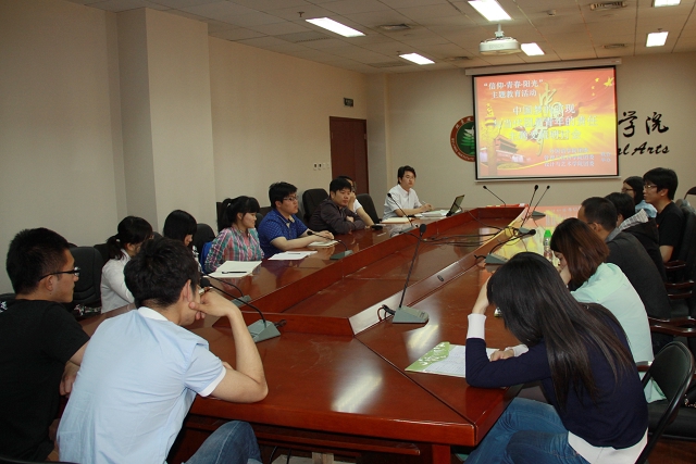 五四青年节到来之际,各级团组织按照团中央统一部署,广泛开展“我的中国梦”主题团日活动,纪念“五四”运动94周年。5月3日中午在教师公寓B216会议室,由外国语学院、管理与经济学院、设计与艺术学院主办的主题为“中国梦与青年团员责任”交流会在此召开。校团委副书记肖坤、外国语学院团委书记周芳集、设计与艺术学院辅导员陈丽健、管理与经济学院辅导员陈铮出席会议,11名来自外国语学院、设计与艺术学院、管理与经济学院的团委学生干部和团支部支委代表参加会议。会议由外国语学院团委书记周芳集主持。