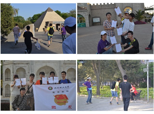 2013年5月11日中午,参与素质拓展的人员准时从良乡校区集合出发,来到了“世界公园”进行素质拓展活动。