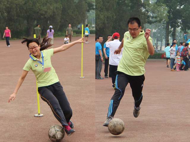 足球绕杆是本届运动会的一个亮点项目,在运动中,队员从运球起动开始,通过“S”型绕杆前进,然后射球的一种综合技术测试,要完胜这项运动可不是一件容易事,不仅要有扎实的技术,更要有好的心理素质,只有将两者结合起来才能把握机会,发挥水平。对于第一次参赛的机械学院博士后尚勇而言,每周都会踢球的他在这次的足球绕杆项目中取得了不错的成绩——虽然距离获得名次只差毫厘,但是他依然不够满意,他期待明年能再来参赛,力争获得更好的成绩。足球绕杆对于女子选手而言,这可不是一项轻松的运动,圆圆的足球似乎很难按照蛇形路径往前走,有时候一不心踩到球,可能还会摔跤。但是北理的女孩们一点也不怕,她们依次上场发挥了最高水平,向外界展示了学校的良好形象。