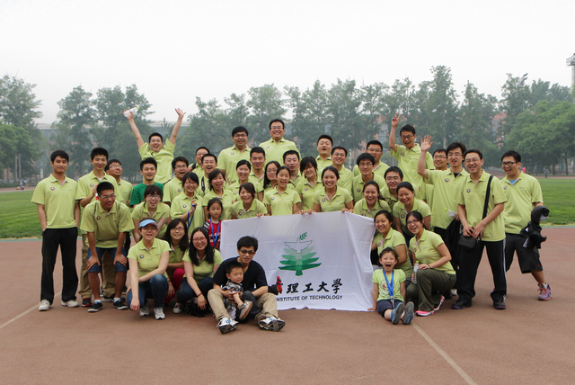 首轮比赛,beat365应战社科院,队员都有一点兴奋,毕竟这是一次“复仇”的好机会。拔河队队长、机电学院博士后徐彬非常重视这次比赛,比赛前他将拔河队员聚集在一起商量比赛的每一个细节,比赛时他更是使用了一些高明的技巧——队员们在赛前商量好本队的加油口号,当比赛出现僵持的时候,拉拉队的队员们会按照徐彬的指挥手势,突然停止加油,屏声静气,而后一举齐声呼喊口号,利用爆发力击溃对手。赛前的精心准备和赛场上的完美策略带来了出其不意的比赛效果,当线上的红绳渐渐拉向北理工的这一方时,社科院不得不放弃了最后的挣扎,裁判宣布北理工获得胜利。
