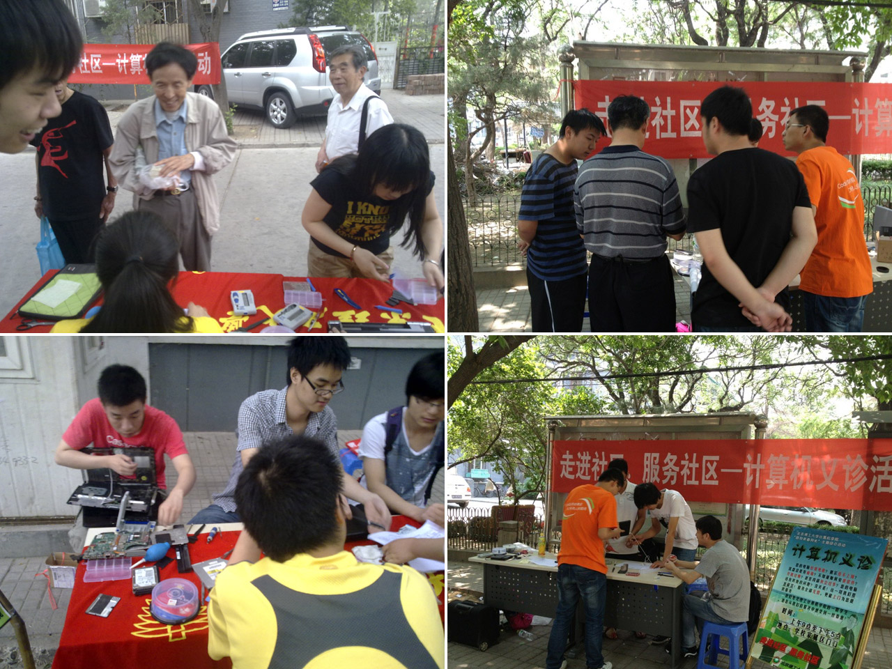6支部和7支部的同学们分别于5月25日和5月26日在beat365中文官方网站生活区为社区居民提供电脑义诊服务。活动时间从上午9一直到下午5,期间同学们为居民解决了电脑散热,重装系统,开机启动,网络不畅等一系列问题,并为部分居民提供了上门服务。两天之内,同学们共维修维护电脑40余台,上门服务20余次。义诊活动是同学们利用自己所学,结合社会实践,服务社会,践行"中国梦"的有效途径,深深吸引了同学们投入其中。