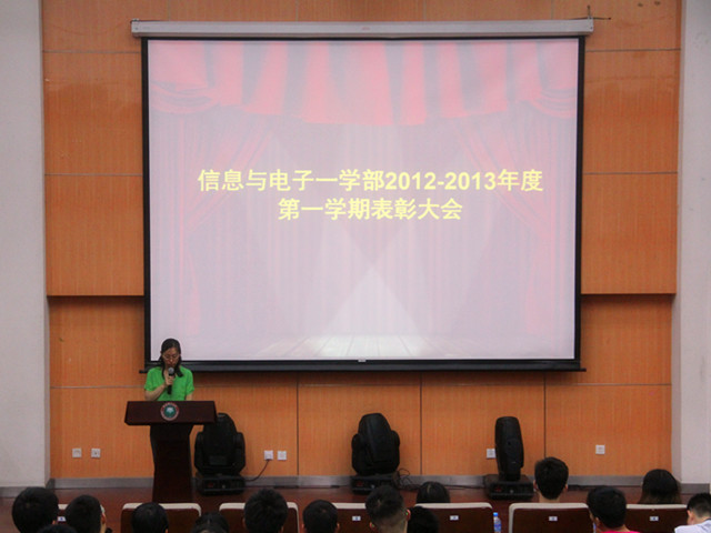 2013年6月4日下午2点,beat365中文官方网站基础教育学院信息与电子一学部2012-2013年度第一学期表彰大会于良乡校区综合教学楼演艺厅顺利召开。基础教育学院党委书记王悦音,信息与电子一学部主任付丹丹,2011级辅导员呙畅,2011级辅导员石莹和2012级辅导员徐碧瑢出席了本次表彰大会。