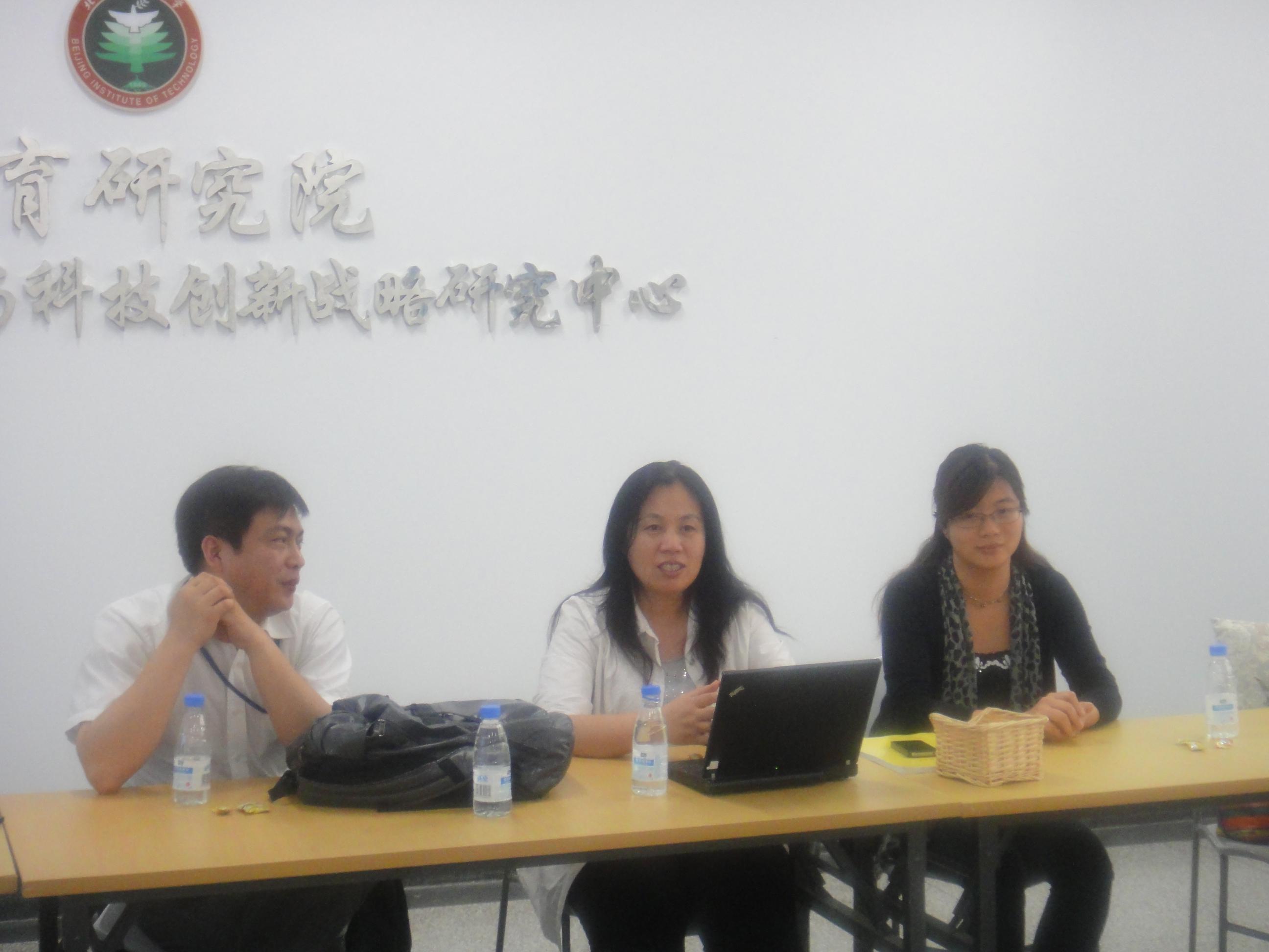参观结束后,调研组返回北理工教育研究院405会议室进行了研讨交流会议,教育研究院何海燕教授主持了会议。会议播放了保利科技集团的宣传片,保利科技集团乔总围绕集团十二五发展规划与大家做了交流。他讲述了保利集团的发展史,通过讲述保利不平凡的发展历程,强调攻坚克难、艰苦奋斗的保利精神让保利科技拥有今天的成就。特别介绍保利集团依托科技发展产业、军贸日益活跃、专利布局在集团发展中的重要地位,产学研合作的新成就等,然后乔总针对同学们关心感兴趣的问题,从保利科技集团招聘应届毕业生所看重的能力和素质展开,与同学们交流了应当培养什么样的职业素养和如何在工作岗位中得到好的发展等问题。