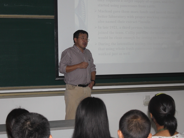 13日下午,“专业入门”活动在中关村校区信息教学楼2002举行,活动由生命学院副院长李勤主持。副院长唐晓英教授、李春教授、屈锋教授、谭信教授、戴荣继教授以及学院机关负责教学工作的老师杨建梅分别就生命学院各专业发展状况、应用领域、就业前景、学习计划等内容为新生进行了全面介绍,新生们纷纷表示受益匪浅,在结束以后,仍然围绕着各位专家老师进行询问,现场气氛十分热烈。