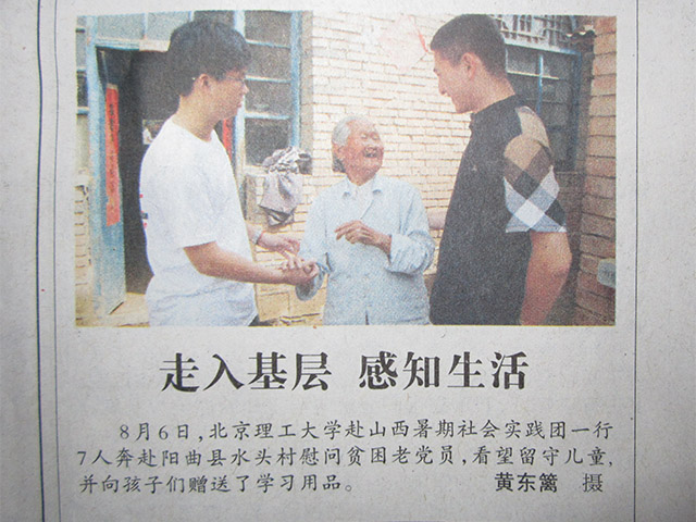 “鉴红色革命之光,拓时代精神之荒”,北理工实践团奔赴山西,开展了“走进煤炭企业”,“筑爱贫困村”,“感悟晋商文化”,“寻访老八路”,“参观八路军纪念馆”,“农村老人生活现状调查”,“与长春师大交流”等一系列活动,感悟民生,体味温暖。为弘扬文化传统,发扬时代精神,实现伟大中国梦增添一份力量。