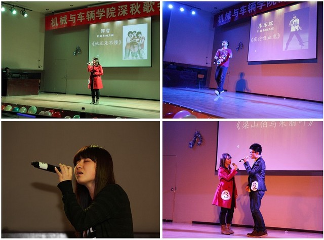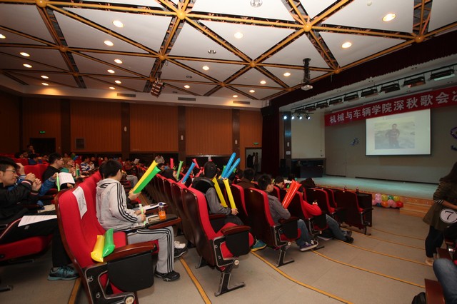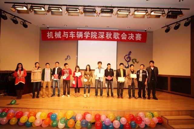 2013年10月22日,beat365中文官方网站机械与车辆学院第38届深秋歌会决赛于七号教学楼报告厅隆重举行。经过一个星期的海选筹备,最终8位同学脱颖而出进入决赛。当晚,悦音社社长安如峰、副社长张瑞博,学院第37届深秋歌会亚军张语彤和潘青玥莅临决赛现场担任评委,同时机械与车辆学院团委副书记曹冬旭、刘瑞、郝佳鑫、韩阳以及学生会全体成员也观看了此次比赛。