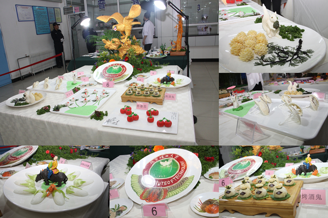 本次竞赛设团体赛和个人赛。团体赛包括展台和大锅菜竞赛,其中展台要求制作冷菜花拼1道(使用三荤四素以上食材),热菜3道(使用不同原料不同烹饪方法),面点或小吃3道(使用不同面团不同烹调方法);大锅菜竞赛包括热菜和面点,要求每队各制作3道不同原料、不同技法、不同口味的菜品和面点。个人赛与团体赛要求近似。后勤集团两队同时参加团体赛和个人赛。