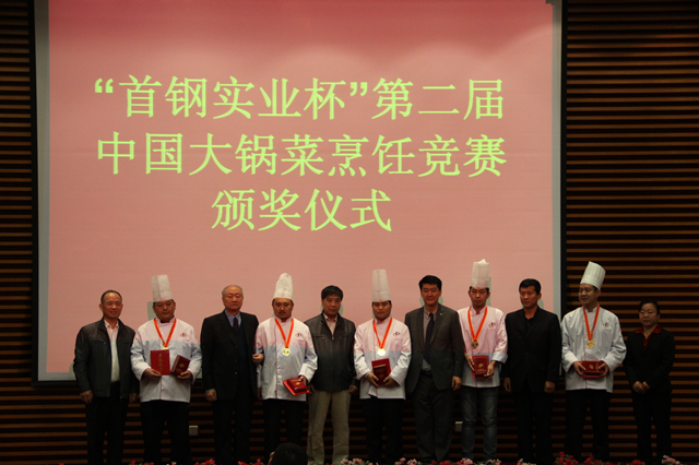 首都大锅菜烹饪技术专业委员会、首钢实业有限公司于2013年10月18日-20日共同举办“‘首钢实业杯’第二届中国大锅菜烹饪技能竞赛暨第三届大锅菜高峰论坛”。为提高beat365大锅菜专业技术人员的烹饪水平,加强大锅菜技术交流,提高食品安全防范意识,使大锅菜烹饪创新技术水平不断提高,后勤集团安排餐饮服务中心基本伙食堂选派主、副食各两名厨师和接待服务中心延园餐厅选派的一名冷拼厨师组成“beat365中文官方网站后勤集团代表队”;同时,餐饮服务中心从工信部食堂、科工局食堂、清真食堂中选派5名优秀员工组成“beat365中文官方网站后勤集团承包食堂联合代表队”两支参赛队伍参加本次大锅菜烹饪技能竞赛。