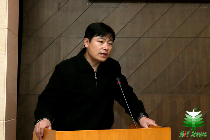 徐欣庆同志祝贺受到表彰的保安员,对两位同学见义勇为,发挥社会正能量,协助公安机关,协助学校保卫部门成功抓获惯犯嫌疑人的行为进行了肯定和赞扬。同时,他表示平安校园的建设上与海淀区争创全国“平安海淀”文明区紧密结合在一起的。海淀区有三十几所大学,在校师生四十多万,占海淀区常住人口的十分之一,这充分说明我们海淀区是文化区、知识区、现代科技的创始区。为把海淀创建成全国的文明区,为把理工大学创建成文明校区,优良的安保力量是不可分割的一部分。希望在今后的工作中,各单位相互配合,为“平安海淀”,“平安校园”共同努力。