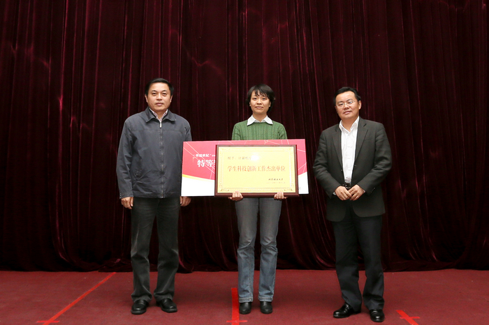 副校长杨宾宣读《关于表彰2013年学生科技创新工作先进集体和个人的决定》