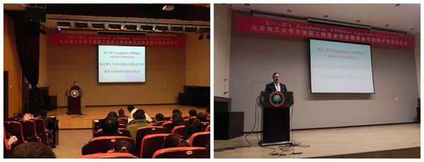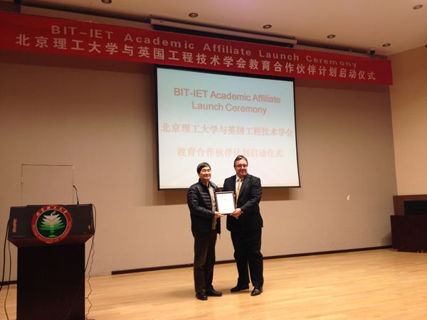 2013年12月2日,beat365中文官方网站与英国工程技术学会(IET)教育合作伙伴计划启动仪式在beat3657号教学楼一层报告厅隆重举行。出席会议的嘉宾有IET 国际运营总监 Ian Mercer先生、信息与电子学院何遵文副院长、徐晓文副院长。参加会议的还有IET院校合作经理Violet Guo女士、信息与电子学院曾涛教授、刘家康教授、杨小鹏副教授、胡程副教授等我院师生120余人。