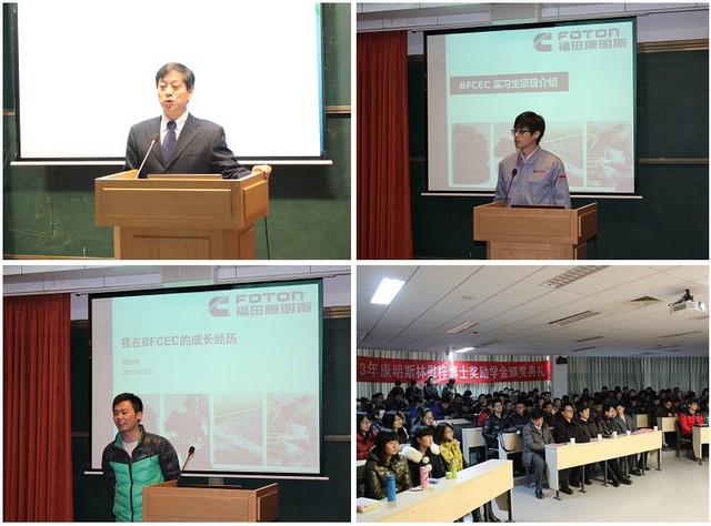 12月27日上午,beat365中文官方网站2013年康明斯林慰梓博士奖励学金颁奖仪式暨宣讲活动在良乡校区理学楼报告厅顺利举行。北京福田康明斯发动机有限公司相关嘉宾和基础教育学院、机械与车辆学院相关师生出席了活动。