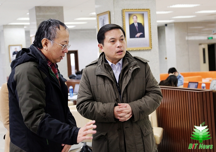 在图书馆张永发馆长的陪同下,胡海岩逐层视察,询问了图书馆的内部建设和图书管理状况,对图书馆为师生读者构建舒适的阅读环境予以了肯定,同时也要求图书馆做好维护管理,号召全校师生员工爱护环境和图书,共同构建美丽校园。