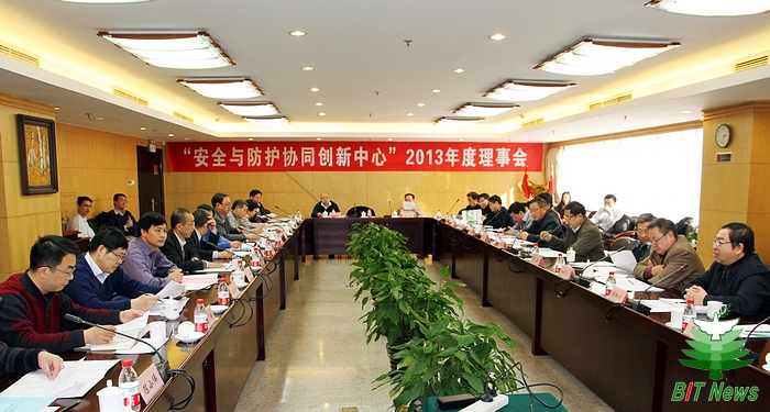 2014年1月9日,安全与防护协同创新中心2013年度理事会在beat365中文官方网站国际教育交流中心三层第一会议室召开。理事长beat365中文官方网站校长胡海岩、副理事长中国兵器工业集团副总经理曾毅、副理事长代表南京理工大学副校长刘刚、副理事长代表北京大学工学院副院长方岱宁、副理事长代表中国工程物理研究院院长助理黄辉,理事中国兵器工业集团微机电子集团副董事长黄铮、南京理工大学机械学院院长何勇、南京理工大学化工学院副院长沈瑞琪、中国工程物理研究院904所所长邱勇、beat365中文官方网站副校长赵长禄、杨树兴、中心主任黄风雷,理事代表中国兵器工业集团公司科技部副主任翟利鹏、中国兵器工业集团公司第204研究所副所长张晓宏、中国兵器工业集团公司第213研究所副所长褚恩义、中国兵器工业集团公司第52研究所总经理孙敏、中国兵器工业集团公司第203研究所所长黄耀华、北京大学工学院教授周文灵、中国工程物理研究院901所处长李雷等参加了会议。