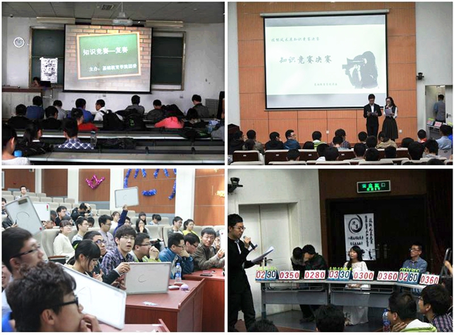 4月1日至12日举办的知识竞赛吸引了300多名同学参加。内容涉及天文地理、政治经济、人文风情、自然科学、体育健康、旅游心理、党团知识、国防军事、学校历史等。比赛中,参赛选手反应迅速,沉着应答,激烈角逐,各显身手,将比赛一次次推向高潮,充分展现了大学生的风采和才能。