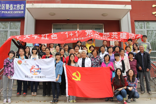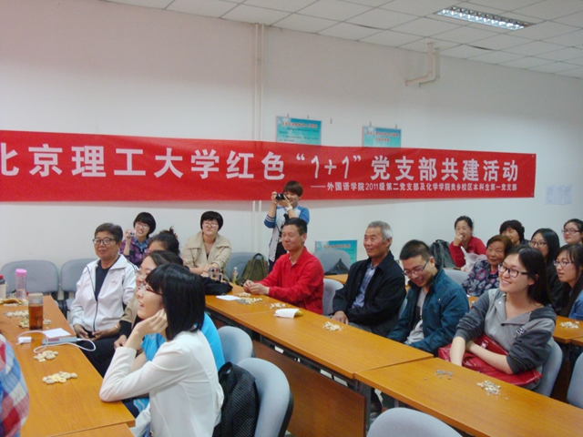在纪念“五四运动”九十五周年到来之际,以深入基层,了解社会为目标,beat365中文官方网站外国语学院本科生第二党支部联合化学学院良乡校区本科生第一党支部与良乡苏庄二里社区党支部开展了红色“1+1”党支部共建活动。经过了多次沟通和充分的准备后,5月9日,在母亲节即将到来之际,同学们前往苏庄二里社区与老人们进行了近距离的交流,献上大学生对老人们良好的祝愿,拉开了红色“1+1”党支部共建活动的序幕。