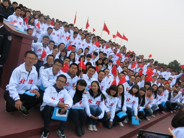 当历史的车轮在曲折的进程中留下深浅不一的辙痕,时间的指针也缓缓指向了2014年10月1日。这一天,是我们的伟大祖国六十五周年华诞,是值得亿万中华儿女欢腾庆祝的日子。六十五年前,老一辈无产阶级革命家们在天安门城楼上向全世界庄严宣告中华人民共和国成立,升起了第一面五星红旗,揭开了中国历史的新篇章;六十五年后的今天,百余名北理学子与首都各界人民一道,怀着崇敬激动的心情汇聚天安门广场,观看升国旗仪式,共同为伟大的祖国母亲庆生!