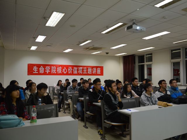 为响应贯彻落实中央《关于培育和践行社会主义核心价值观的意见》精神及共青团中央的部署要求,切实引导和帮助青年学生以习近平总书记系列重要讲话精神为根本遵循,自觉将社会主义核心价值观内化于心、外化于行。2014年11月18日晚,生命学院举办了“社会主义核心价值观”主题讲座,主讲人为生命学院党委书记刘存福。生命学院副书记、副院长刘晓俏出席了本次讲座。