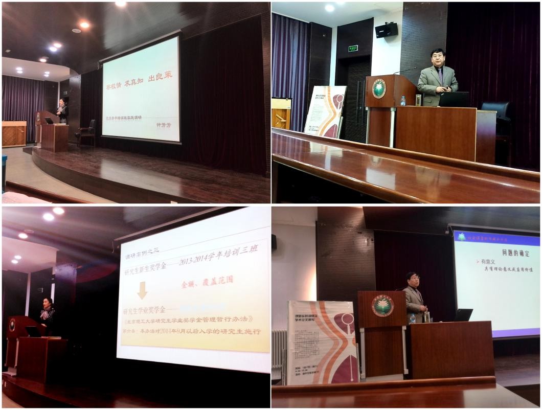 其后,党员骨干培训班进行了《课题实践调研以及学术论文撰写》为主题的专题讲座。本次讲座旨在为即将展开的实践调研项目提供理论基础和指导方法,从社会调查的含义入手,为党员骨干讲解了社会调查的一般步骤和方法:首先根据研究目的确定研究课题和假设;其次选取合适的方法收集资料,重点介绍了文献调查法、实地观察法、访谈法以及问卷调查法,并对各个方法做了比较分析;最后对资料的整理分析以及调查报告撰写要领进行了系统介绍。整场讲座内容丰富,学员收获颇丰。