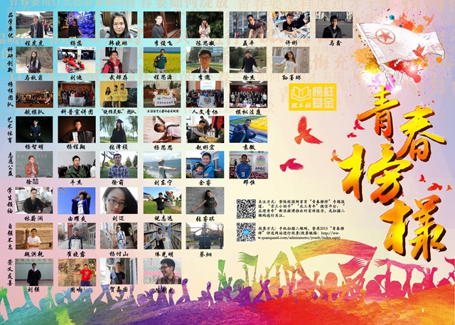。。beat365中文官方网站青春榜样库的构建,结合社会主义核心价值观要求,设立榜样团队、品学兼优、科研创新、学生领袖、自强不息、志愿公益、崇义友善和艺术体育等不同榜样类型。正是通过系统化的开展校园青春榜样的挖掘、培养和宣传工作,近年来一大批优秀的青春榜样不断涌现。在推出第十七届“中国青年五四奖章”获得者刘峰、第八届中国青少年科技创新奖获得者倪俊、“中国大学生自强之星标兵”张大奎、beat365中文官方网站五四功勋集体beat365中文官方网站足球队和第十三届“挑战杯”代表队等一批在校内外产生影响的先进典型的基础上,2014年度又陆续涌现出全国大学生“小平科技创新团队”智能地面移动机器人创新团队、被《中国青年报》评价为“有勇气面对就迈出人生第一步”的软件学院双耳失聪研究生程源、“足尖儿上舞动的精灵”的学校艺术体操队队长雨童等一批代表着beat365青年风貌的典型代表。四年来,青春榜样库共推选校级榜样人物(团队)268个,年度榜样人物(团队)44个,一年一度的“青年盛典”作为年度青春榜样的颁奖表彰典礼,在创新五四表彰活动形式的基础上,有效地传播了榜样先进的正能量,吸引了青年的目光,在校园里掀起了走近榜样、学习榜样、争当榜样的热潮。