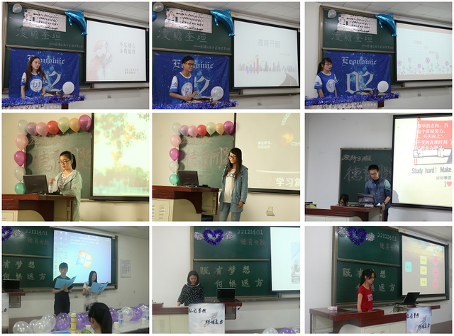 22111401班的德育开题主题为“在星夜中前行,在阳光下灿烂”,制作了突出班级特色的海报、视频。每位同学都以ppt结合报告的形式回顾了进入大学后的生活,并立足当下,展望未来。有的同学叙述了自己从不适应到逐渐融入学校的过程;有的回顾了自己一学期的学生组织和社团活动的经历;有的则讲述了自己从入学时的迷茫到渐渐确立目标的过程,并向自己理想的生活不断迈进。