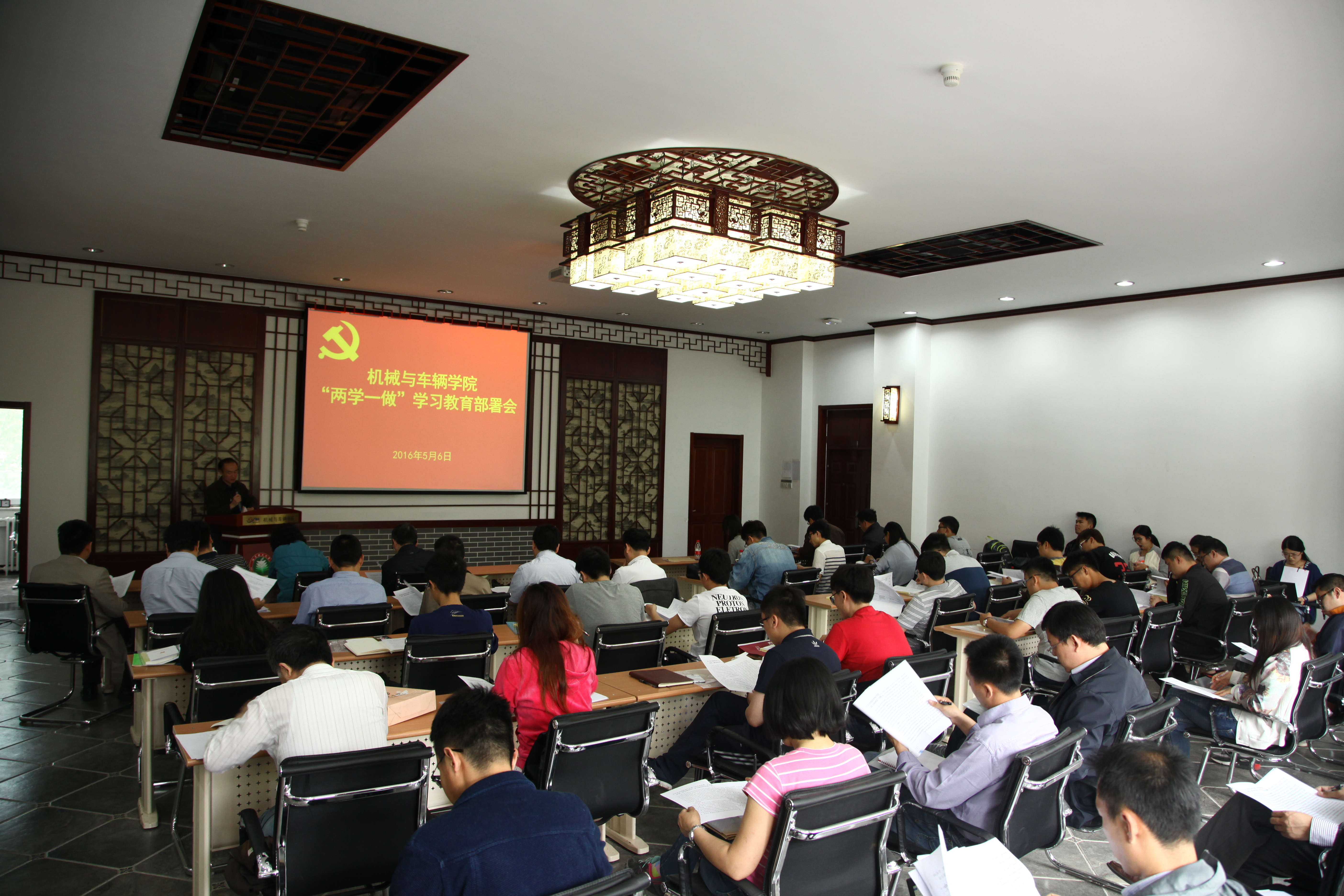 5月6日下午,机械与车辆学院“两学一做”学习教育工作布置会在车辆重点实验室报告厅召开。学校“两学一做”学习教育协调小组成员、校纪委监察室副主任孙萍,学院领导班子全体成员、学院党委委员、教工党总支书记、支部书记,学生党支部书记60余人参加了会议。会议由学院党委书记左正兴主持。