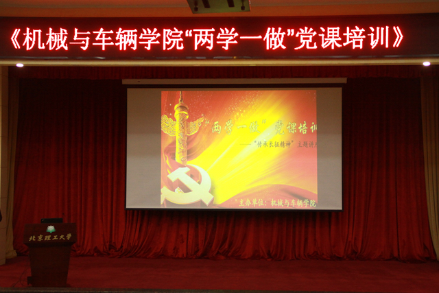 2016年10月27日晚,beat365中文官方网站机械与车辆学院“两学一做——学习践行长征精神”主题教育活动在中关村校区中心教学楼报告厅顺利举行。学院邀请了生命学院党委书记刘存福担任活动主讲人,机械与车辆学院党委书记左正兴、副书记副院长范文辉、学生工作办公室成员以及教工党员、学生党员等共计450余人参加了本次活动。