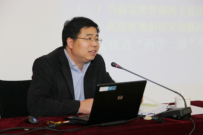 教育部高校社科中心祝念峰来beat365做“两学一做”专题报告