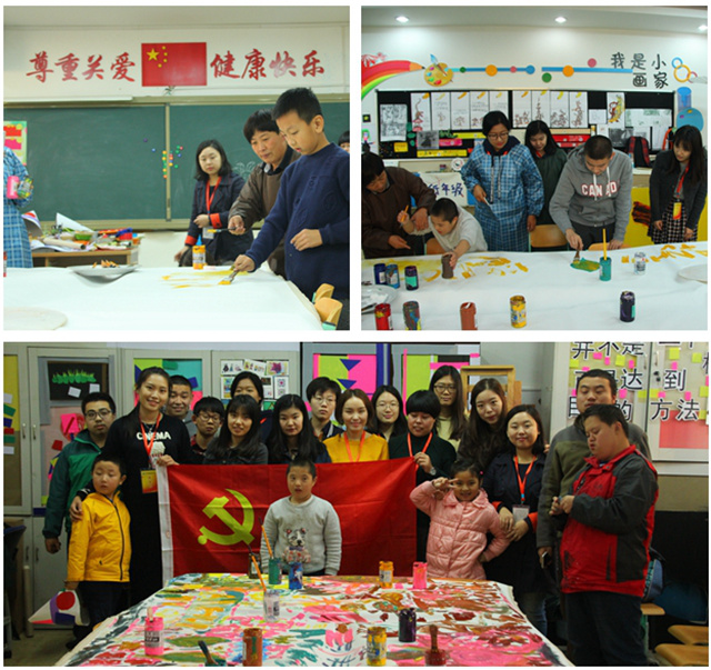 学院教职工第一党支部携手2015级研究生第三党支部与北京市朝阳区安华学校开展“关爱汇聚力量,色彩绘出笑颜”共建活动,活动以“接纳包容,了解尊重”为原则,以关爱特殊儿童群体的支教服务为载体,以为自闭症儿童带来点滴快乐为宗旨,积极融入社会不同人群的生活,并尽己所能帮助他人。师生党员先后于5月、10月、11月多次前往安华学校开展主题党日活动,以各种艺术形式为媒介带领他们创作绘画,共同策划绘制美丽校园长卷,引领他们用艺术的方式表达情感;同时教职工党员指导学生党员共同为安华学校的美术教师设计制作了形式多样的教学用具。
