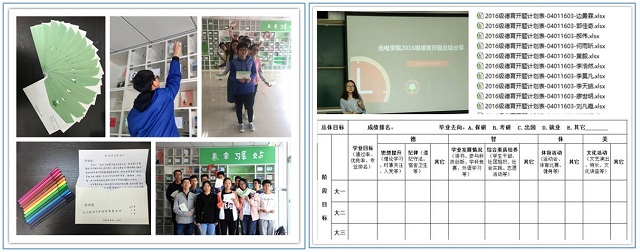为巩固德育开题成果,学院组织学生书写“给未来的一封信”,让同学们自由设计信封,并统一邮寄信件;组织同学们填写《光电学院德育开题计划表》,从德智体美四个方面量化每学年目标,以便同学们及时自我反馈和调整。学院还利用年级大会时间,回顾开题过程,分享优秀作品,相互借鉴经验。德育开题作为德育答辩工作的重要环节,以启迪新生认识自我、思考人生、确立目标、追求梦想为目的,通过各方力量帮助学生树立正确目标,通过思考,合理规划,不断成长。学院将继续加强学生思想政治教育工作,引导同学们传承和发扬学院的优良传统,为实现心中梦想,为快乐度过大学时光而不断努力!
